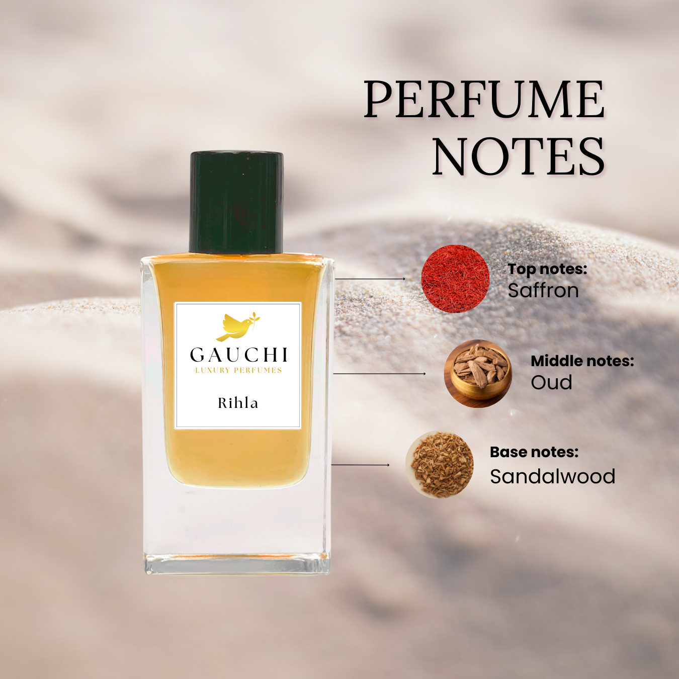 Rihla is a tribute to timeless journeys through spice markets, sun-soaked deserts, and ancient cities. The fragrance opens with a soft warmth of saffron and a whisper of anise, inviting you into a world rich with tradition and depth. At its heart, smoky oud blends with golden honey and cinnamon, adding a sweet, resinous heat. As it settles, creamy sandalwood and earthy patchouli wrap the scent in a smooth, lingering base.